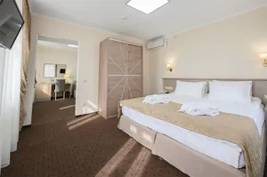 Здание отеля выполнено полностью из кирпича, декорировано деревянными элементами фасада в традиционном русском стиле. Для бронирования предлагаются номера категорий Стандарт и Полулюкс. Номера оснащены комфортабельной кроватью с ортопедическим матрасом, эргономичным креслом, Wi-Fi, кондиционером, телевизором, холодильником, сейфом, удобной рабочей зоной и собственной ванной комнатой с туалетно-косметическими принадлежностями.