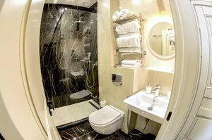 Номера отеля выполнены с применением дорогих отделочных материалов, с обеспечением качественной шумоизоляции стен и потолков, оборудованы системами принудительного обогащения комнат свежим очищенным воздухом. Имеется вся необходимая техника для приятного времяпровождения. К услугам гостей уютное кафе. Здесь можно быстро, недорого и, главное, вкусно перекусить. Своя пекарня позволяет готовить выпечку на месте.