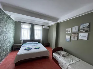 Описание на сайте полностью соответствует действительности, в номере все чисто и аккуратно. Вода холодная и горячая чистая, без перебоев. Хозяин всегда на связи, приветлив доброженлателен, ответит на все вопросы, подробно расскажет, что лучше посмотреть, куда съездить. Дом находится на горе,магазинов рядом нет, до остановки общественного транспорта около 300 м.