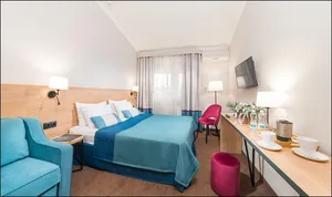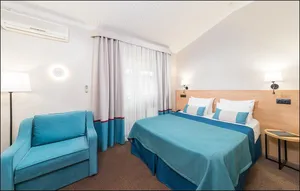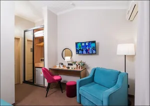 Гостям предлагают для размещения номера Стандарт, Комфорт, Студия, Улучшенный и Люкс. Во всех есть кондиционер, телевизор, сейф, холодильник и собственная ванная комната с туалетно-косметическими принадлежностями.