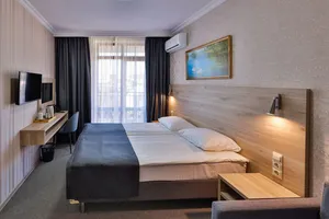 Отличная трешка! Цена соответствует качеству. Номер функционально хорошо укомплектован: достаточно полотенец, есть сейф, современный ремонт. Можно попить чай. Расположение отличное, рядом с морем. Довольны.