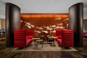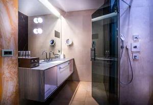 Источником вдохновения для Антонио Читтерио стало знаменитое яйцо Фаберже. В интерьере отеля загадки дома Фаберже раскрываются в современном прочтении. Уникальные светильники из настоящего 24-каратного золота Ortenzia Very Very Gold, инсталляции из замороженного акрила от виртуозного Джакопо Фоджини – из этих деталей складывается столь притягательный образ шкатулки с драгоценностями.