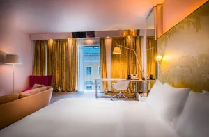 Просторные номера отеля SO St. Petersburg оснащены кондиционером, телевизором, мини-баром, сейфом и кофемашиной. В собственной ванной комнате — фен, халаты, тапочки и косметические средства. Дизайн интерьеров разработал Антонио Читтерио.