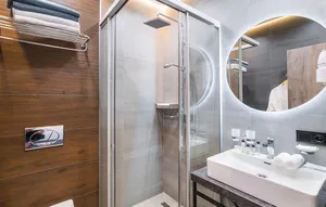 Номер потрясающий, все новое, кровать большая, тапочки и все принадлежности в отменном состоянии, сам отель с шикарным свежим ремонтом, однако будьте готовы подниматься пешком на 3 и 4 этажи, так как лифта нет. Очень чисто, микроволновка, чайник и холодильник в идеальном новом состоянии! Персонал вежливый, общались только с девушкой на ресепшене. До отеля можно добраться только на машине, так как он находится на окраине Геленджика. Пешком оттуда никуда не дойти.