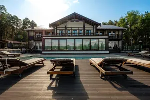 Загородный отель представляет три современных корпуса европейского уровня, расположенных на большой и ухоженной территории в сосновом лесу. Номерной фонд загородного отеля объединяет 25 просторных номеров с выходами на террасу, каждый из которых оснащён всем необходимым для комфортного проживания гостей — телефоном, телевизором, чайником, ванными принадлежностями и кондиционером.