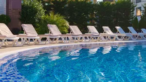 На территории отеля расположен открытый подогреваемый бассейн с отдельной детской зоной. Температура в бассейне поддерживается на уровне 26-28 градусов. Размеры бассейна 18 м на 22 м, глубина от 140 до 160 см, глубина в детской зоне — 60 см.