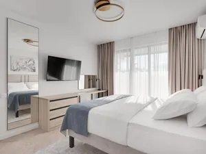 Отдыхающие найдут комфортные условия проживания в наших современных апартаментах различной категории. Каждый номер оснащен качественной мебелью, стильным интерьером и всеми необходимыми бытовыми принадлежностями, включая кухонный гарнитур со встроенными приборами и посуду для полноценного питания (кроме категорий ПРОМО). Гостям предлагается выбор номеров разного размера и типа, начиная от компактных студий и заканчивая просторными трёхкомнатными апартаментами общей площадью свыше 80 квадратных метров.