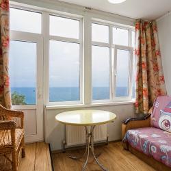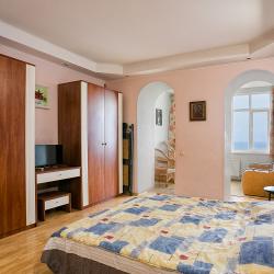 Двухкомнатные апартаменты для размещение до шести человек. Для удобства имеется два раздельных санузла. В одном есть душевая кабина и туалет, а в ванной комнате туалет и ванна. Имеется стиральная машина. В двух комнатах находятся 3 двух спальных кровати на шесть спальных мест. Очень мягкие и удобные подушки и одеяла. Для приготовления пищи имеются 2 кухни со всей необходимой посудой и газовой плитой и 2 холодильника. В каждой комнате есть телевизор и кондиционер и бесплатный доступ к интернету. В распоряжении гостей персональный дворик для отдыха в окружении зелени и цветов, а с другой стороны балкон с видом на море. В путешествие можно взять питомца. Возможно размещение с домашним любимцем за дополнительную плату. А ещё в распоряжении гостей шезлонг и зонт и гладильные услуги. Вечером приятно прогуляться по центральной набережной, послушать уличных музыкантов или посмотреть прекрасные картины местных художников.