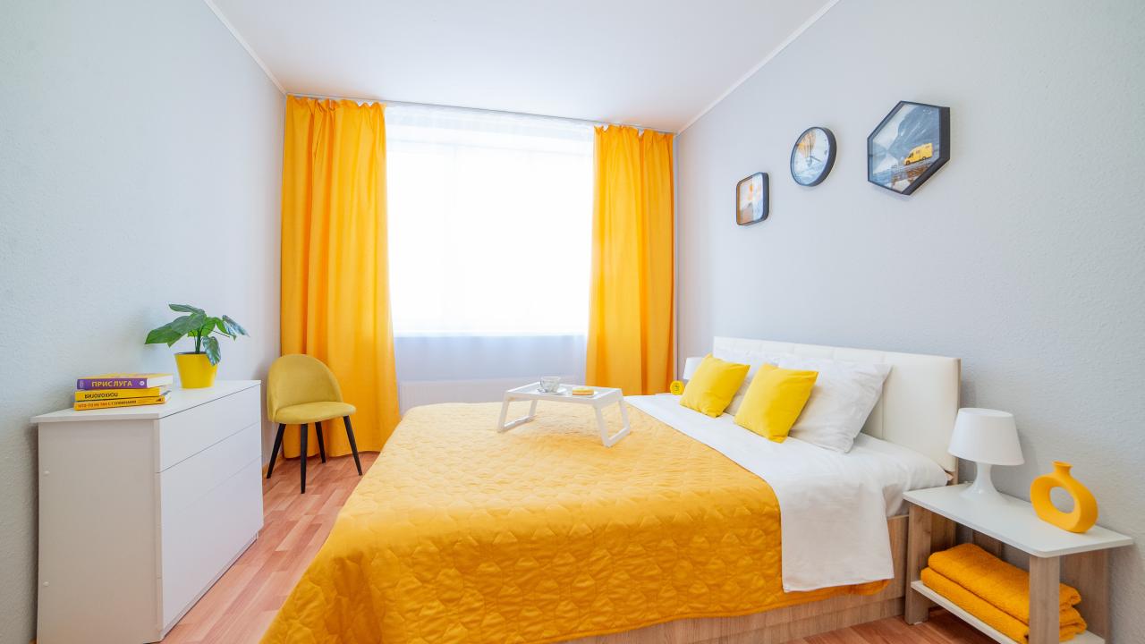 Приезжали в Екатеринбург с коллегой по работе для выступления на бизнес-форуме. Компания сняла для нас данные апартаменты, места позволяла спокойно вдвоём проживать, здесь со спальными местами нет никаких проблем, всё было комфортно и уютно. Думаю, для больших семей тоже вполне мест хватит. Конечно, до центра города далеко, но так как наша цель не заключалась в просмотре местных достопримечательностей, нас всё устроила, тут каждый выбирает под свои запросы.