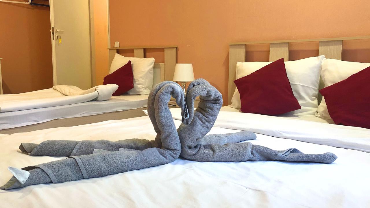 Уже второй год останавливаемся в этом отеле. Бронировать можно по тел., который указан на сайте. Оплата по прибытию. Заселяют быстро (по договоренности в удобное для вас время). Цель поездки - шопинг, поэтому расположение отеля очень удобное. Рядом метро, ТЦ Гринвич, кафе "Вилка-ложка", напротив отеля м-н Кировский, где можно продуктов купить. Номер небольшой, но есть все удобства (туалет, ванна, холодильник, телевизор). Все чисто и аккуратно. В коридоре кулер с горячей и холодной водой. Цена для центра я считаю очень приемлемая и обслуживание достойное.
