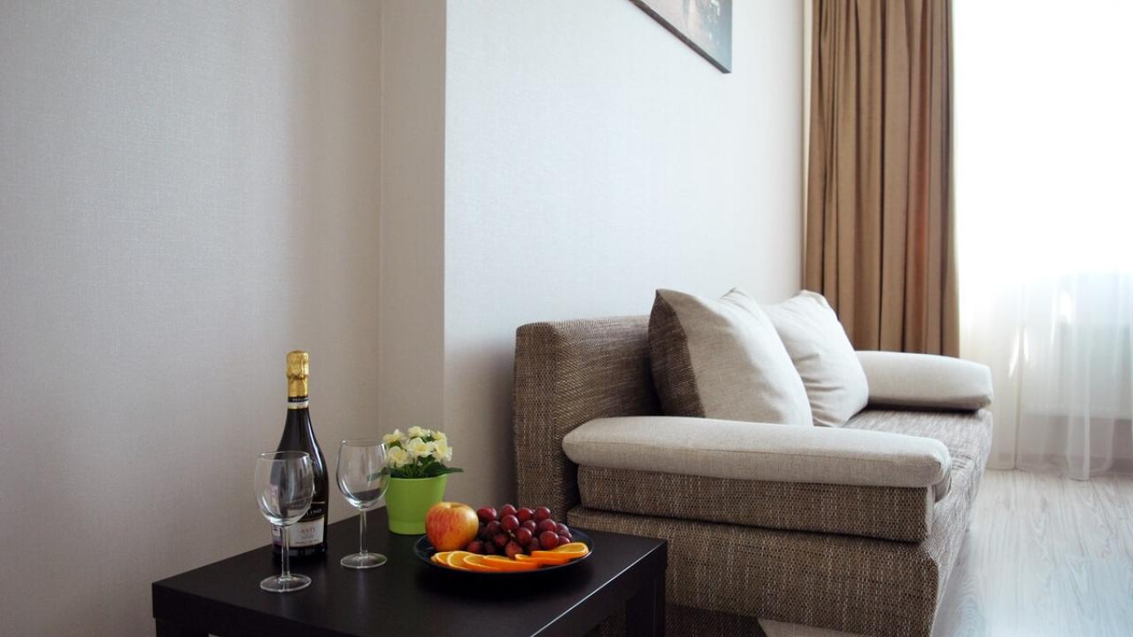 Очень достойные условия, для проживания двух человек максимальные удобства. Насладились уютной атмосферой, интерьер продуман до мелочей, размещение в апартаментах максимально комфортное. Чистота поддерживается на максимально высоком уровне, полное отсутствие неприятных запахов или раздражающих ароматов. Совершенно не имеется отрицательных сторон, вариант проживания абсолютно положительный.