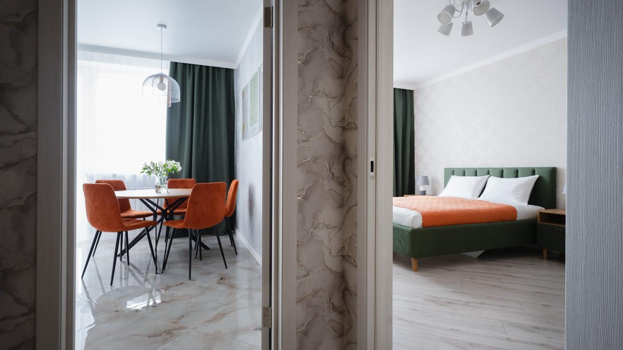 Очень достойные условия, для проживания двух человек максимальные удобства. Насладились уютной атмосферой, интерьер продуман до мелочей, размещение в апартаментах максимально комфортное. Чистота поддерживается на максимально высоком уровне, полное отсутствие неприятных запахов или раздражающих ароматов. Совершенно не имеется отрицательных сторон, вариант проживания абсолютно положительный.
