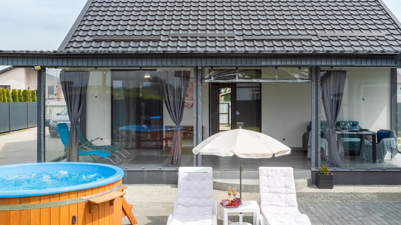 Замечательный вариант для тех, кто хочет отдохнуть от суеты и шума города. Здесь есть большая кровать, баня, выход на террасу. Оснащены дома всей необходимой техникой, покушать можно, заказав еду из ресторана. Ходили на рыбалку, в общем, отдохнули отлично!