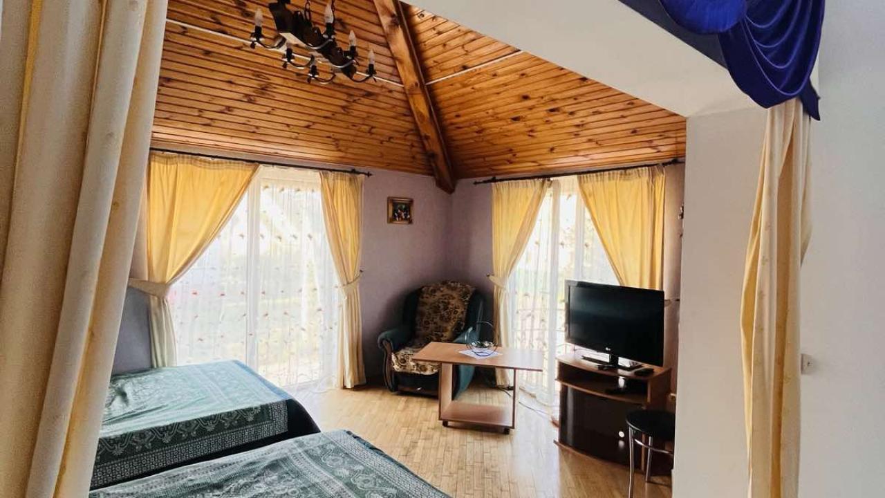 В гостевом доме 11 двухместных номеров. В номерах есть все необходимое для комфортного проживания гостей: двуспальная или 2 односпальные кровати, телевизор, чайник. Собственный санузел с ванной.