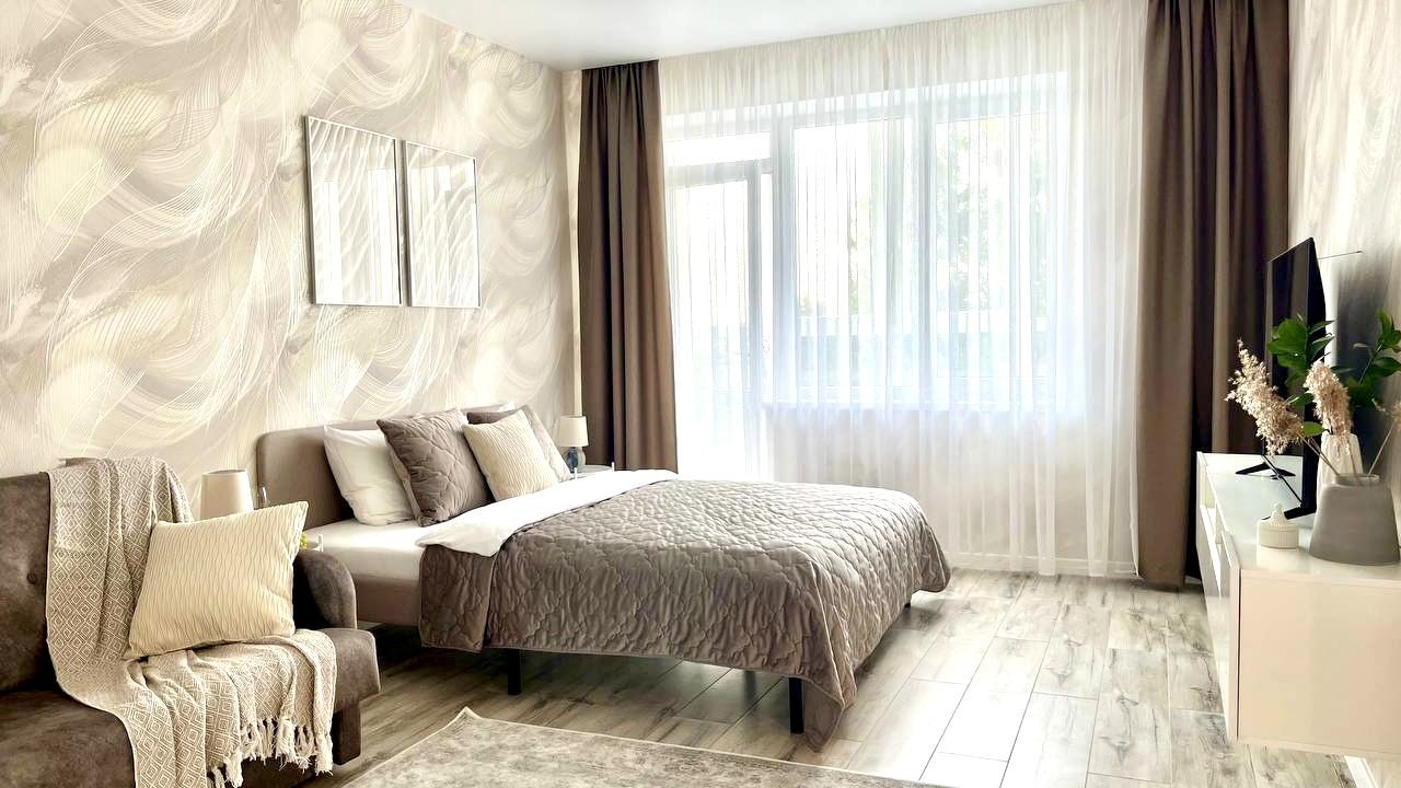 Очень достойные условия, для проживания двух человек максимальные удобства. Насладились уютной атмосферой, интерьер продуман до мелочей, размещение в апартаментах максимально комфортное. Чистота поддерживается на максимально высоком уровне, полное отсутствие неприятных запахов или раздражающих ароматов. Совершенно не имеется отрицательных сторон, вариант проживания абсолютно положительный.