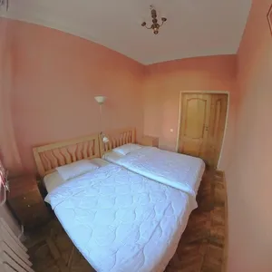 Имеется общая комната для отдыха с телевизором и местом для работы, общая кухня, которая оборудована необходимой бытовой техникой и набором посуды. При необходимости можно воспользоваться стиральной машиной и гладильными принадлежностями. Во дворе есть детская площадка и парковка. Парковка оплачивается дополнительно. Двор закрытый, охраняемый.
