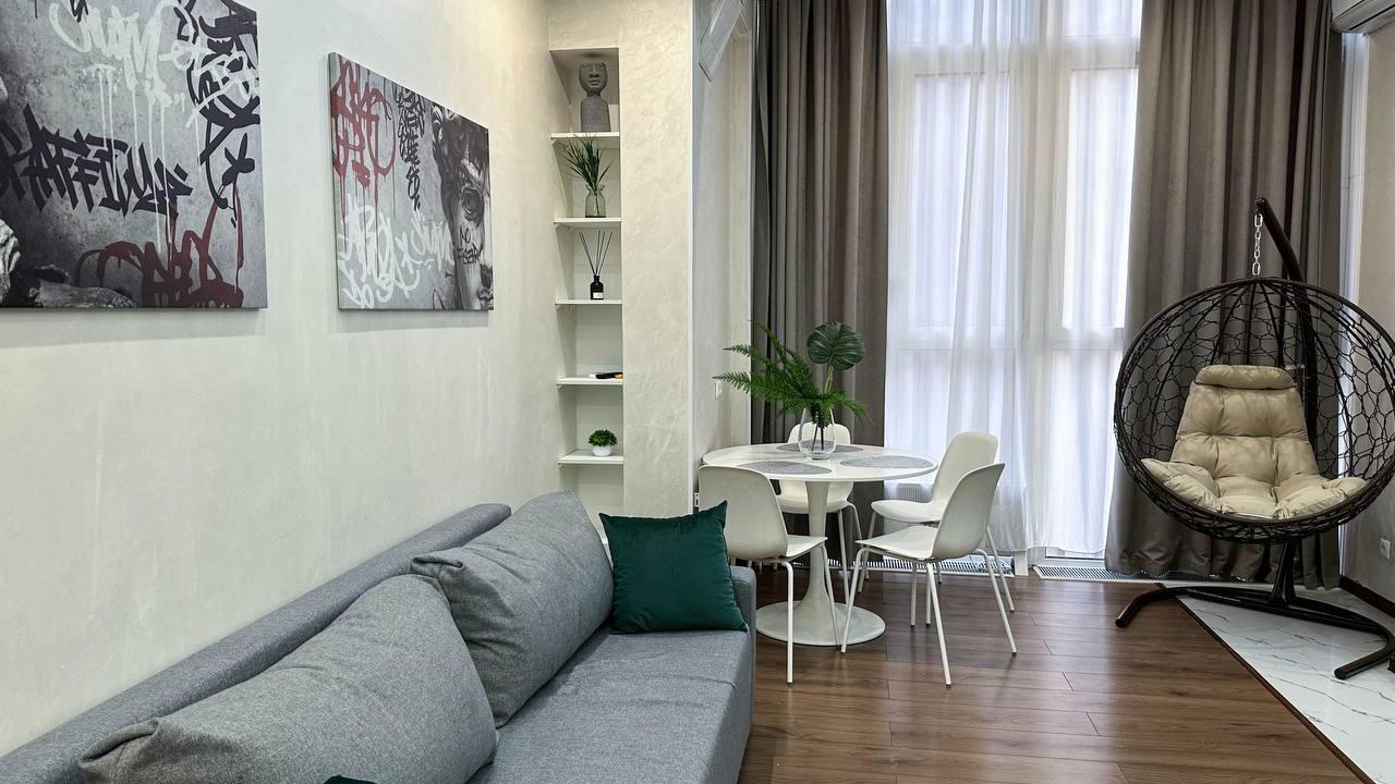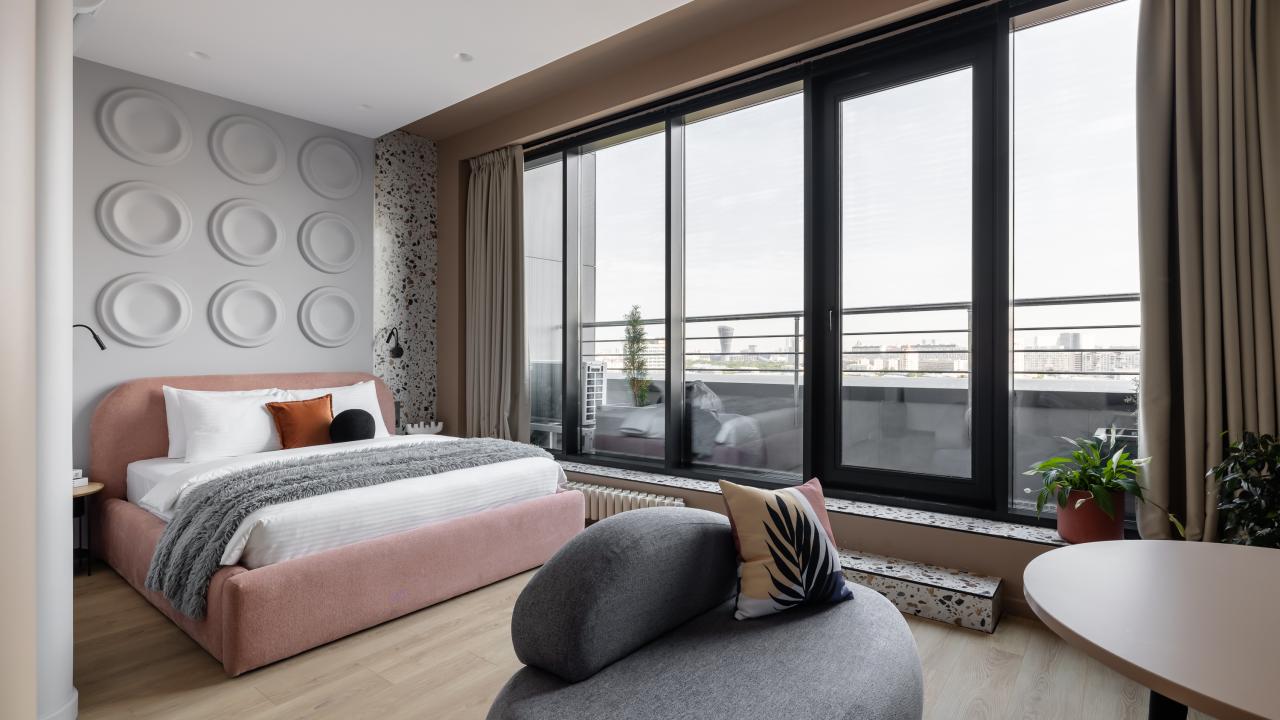 Отличные апартаменты, большая кровать, кондиционер. Удобная планировка. Привлекательный дизайн. Отличные условия для крепкого сна и проживания в целом. Рядом магазины и кафе. Персонал внимателен к гостям, обслуживание отличное, отель чистый.