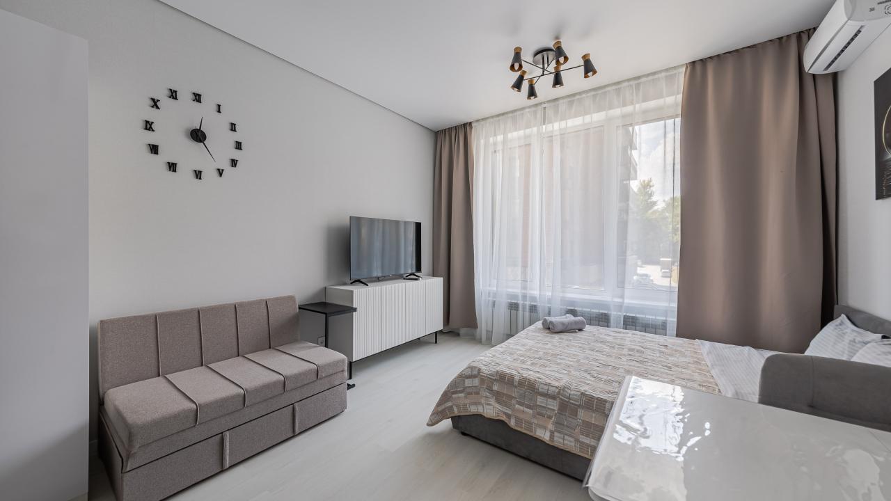 Отличные апартаменты, большая кровать, кондиционер. Удобная планировка. Привлекательный дизайн. Отличные условия для крепкого сна и проживания в целом. Рядом магазины и кафе. Персонал внимателен к гостям, обслуживание отличное, отель чистый.