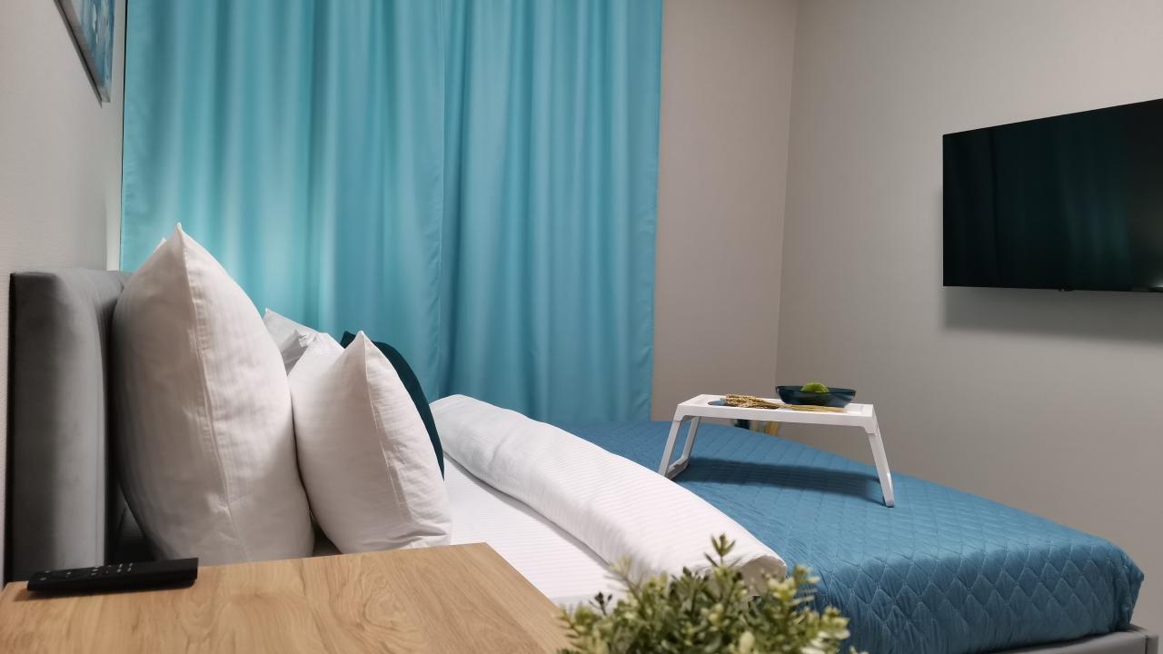 Отличные апартаменты, большая кровать, кондиционер. Удобная планировка. Привлекательный дизайн. Отличные условия для крепкого сна и проживания в целом. Рядом магазины и кафе. Персонал внимателен к гостям, обслуживание отличное, отель чистый.