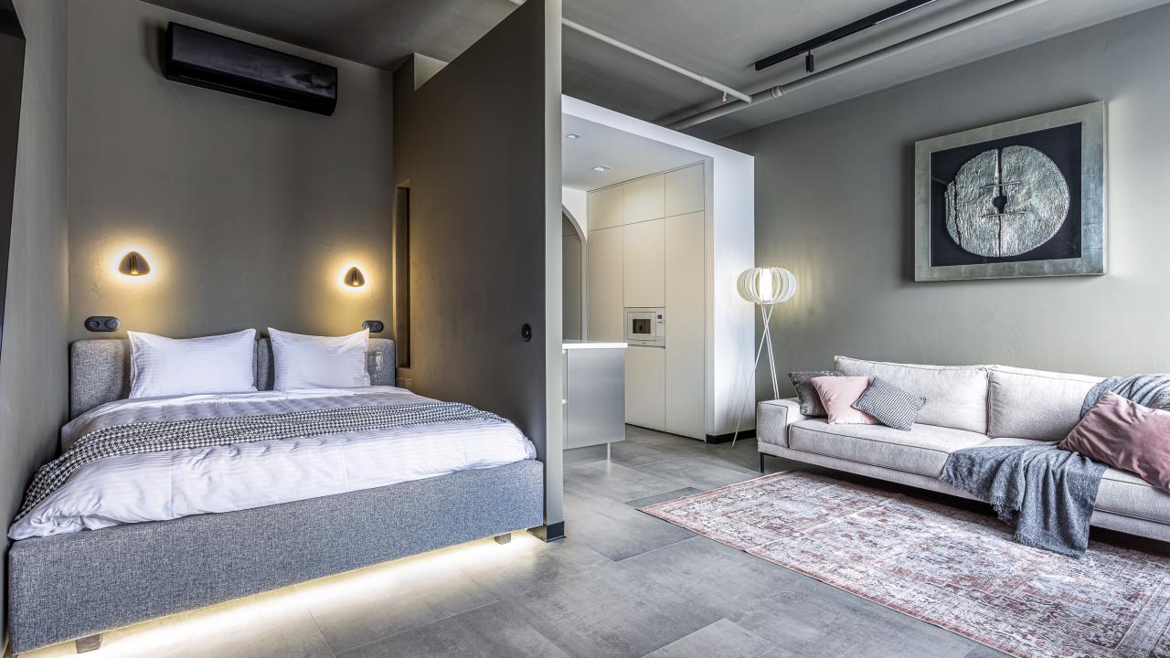 Отличные апартаменты, большая кровать, кондиционер. Удобная планировка. Привлекательный дизайн. Отличные условия для крепкого сна и проживания в целом. Рядом магазины и кафе. Персонал внимателен к гостям, обслуживание отличное, отель чистый.