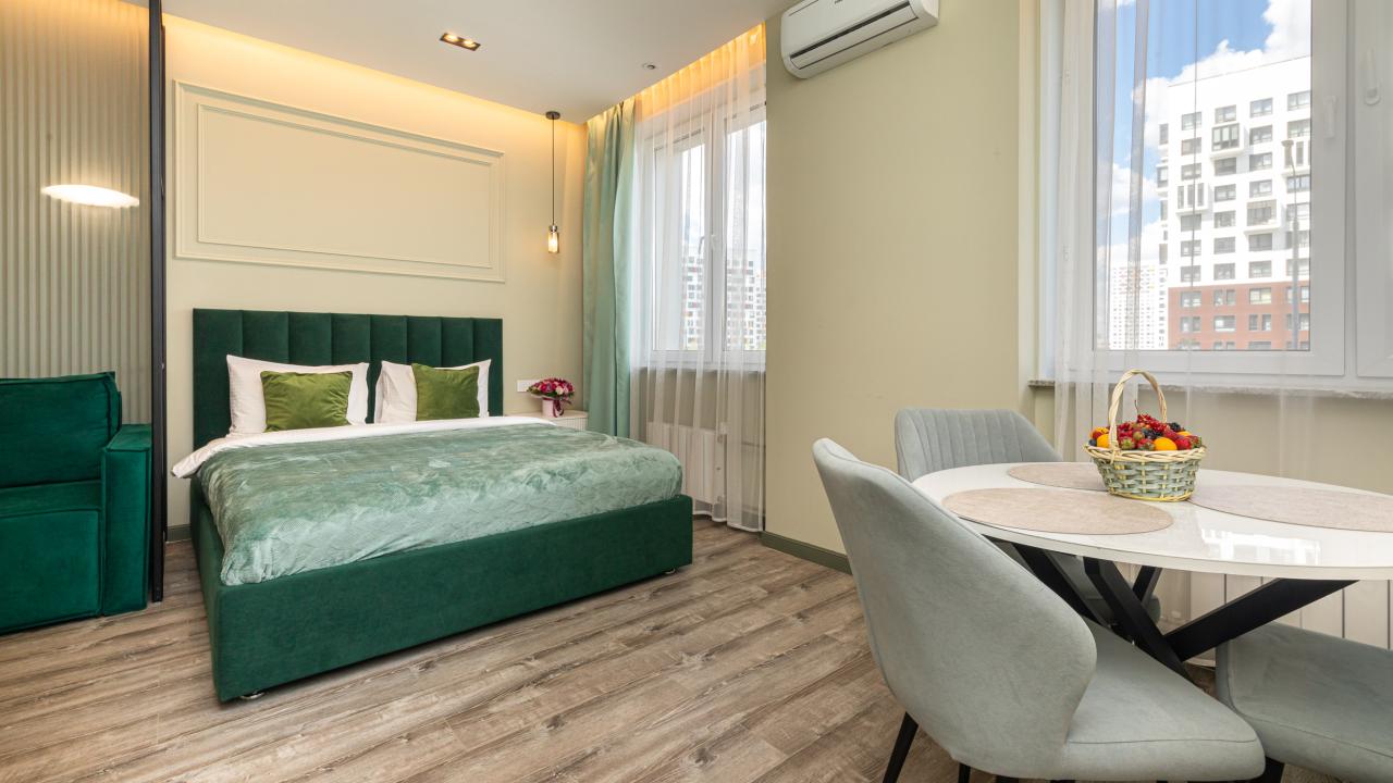 Отличные апартаменты, большая кровать, кондиционер. Удобная планировка. Привлекательный дизайн. Отличные условия для крепкого сна и проживания в целом. Рядом магазины и кафе. Персонал внимателен к гостям, обслуживание отличное, отель чистый.