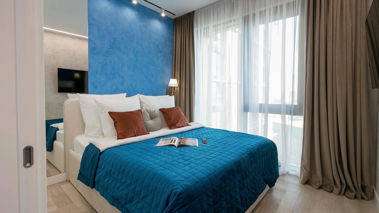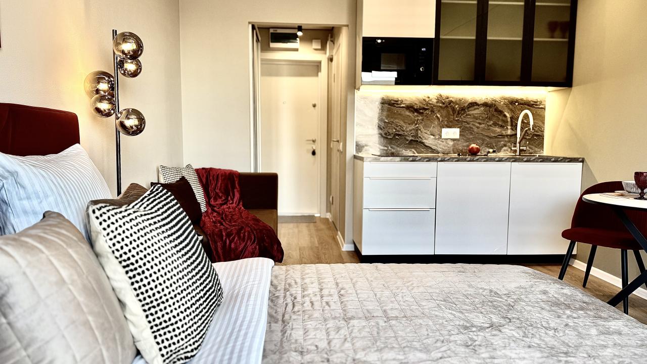 Отличные апартаменты, большая кровать, кондиционер. Удобная планировка. Привлекательный дизайн. Отличные условия для крепкого сна и проживания в целом. Рядом магазины и кафе. Персонал внимателен к гостям, обслуживание отличное, отель чистый.