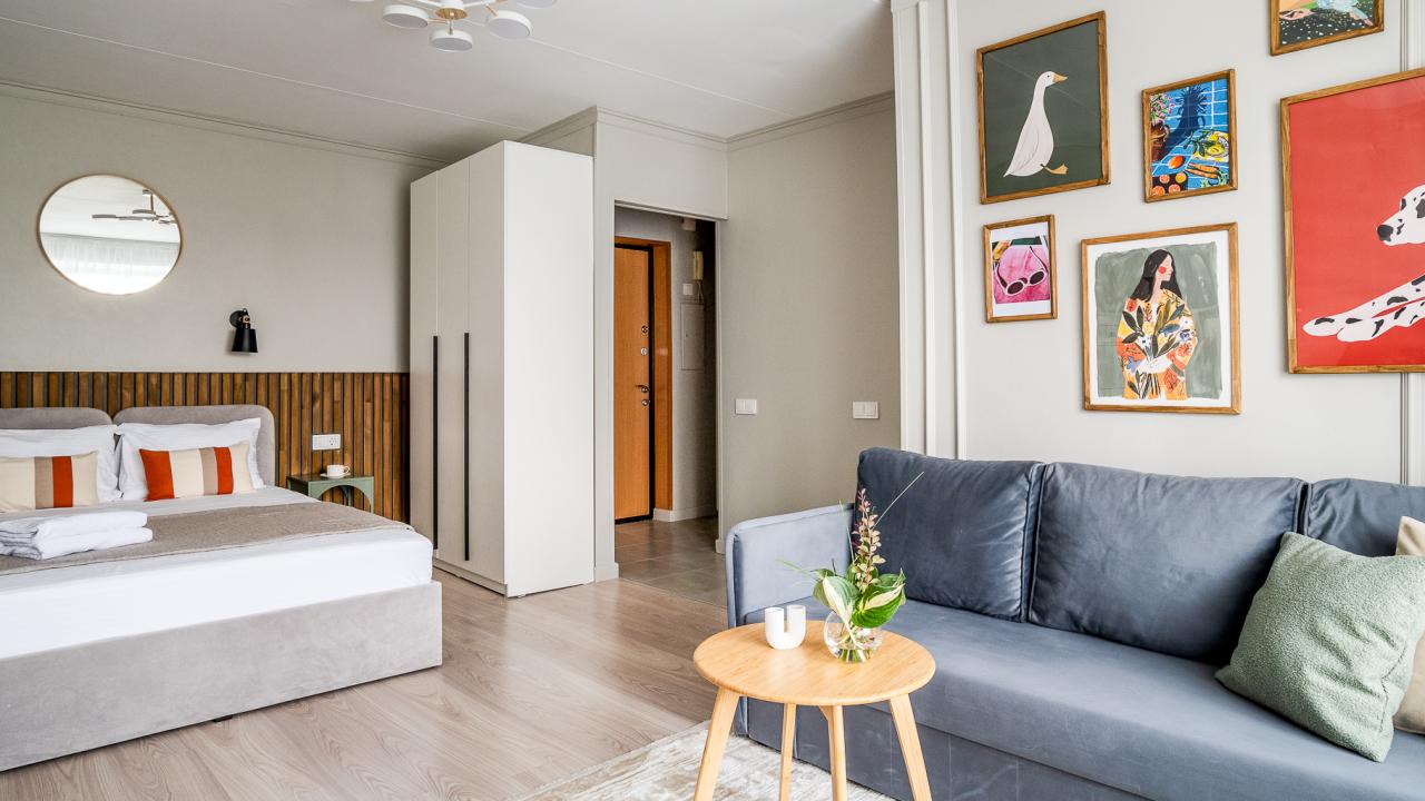 Отличные апартаменты, большая кровать, кондиционер. Удобная планировка. Привлекательный дизайн. Отличные условия для крепкого сна и проживания в целом. Рядом магазины и кафе. Персонал внимателен к гостям, обслуживание отличное, отель чистый.