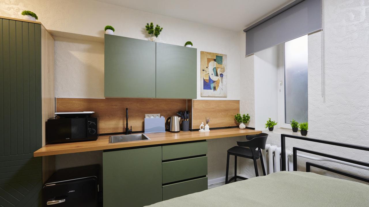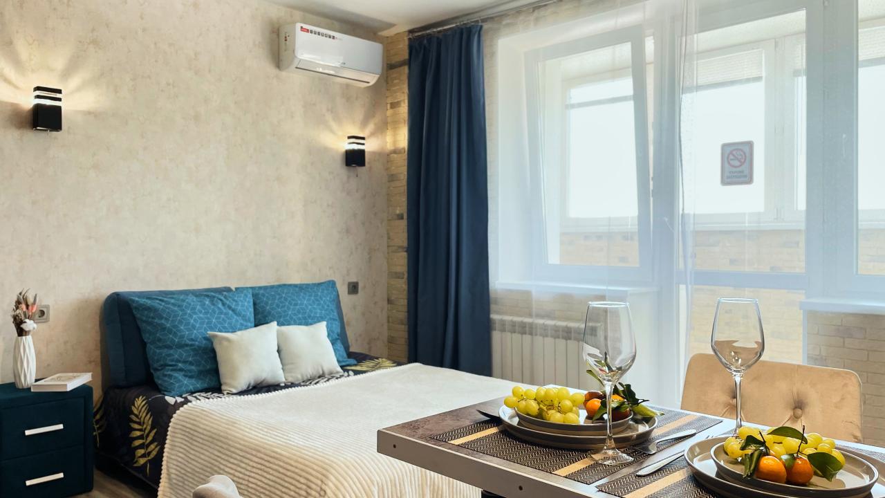 Отличные апартаменты, большая кровать, кондиционер. Удобная планировка. Привлекательный дизайн. Отличные условия для крепкого сна и проживания в целом. Рядом магазины и кафе. Персонал внимателен к гостям, обслуживание отличное, отель чистый.