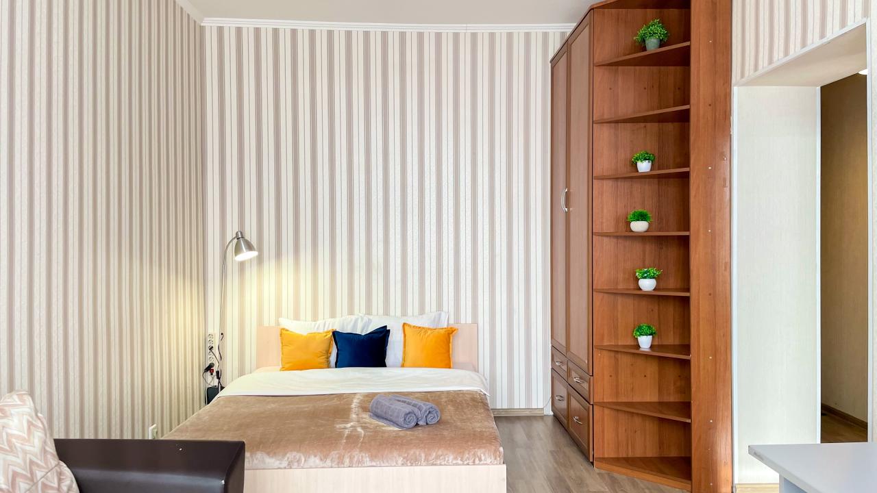 Отличные апартаменты, большая кровать, кондиционер. Удобная планировка. Привлекательный дизайн. Отличные условия для крепкого сна и проживания в целом. Рядом магазины и кафе. Персонал внимателен к гостям, обслуживание отличное, отель чистый.