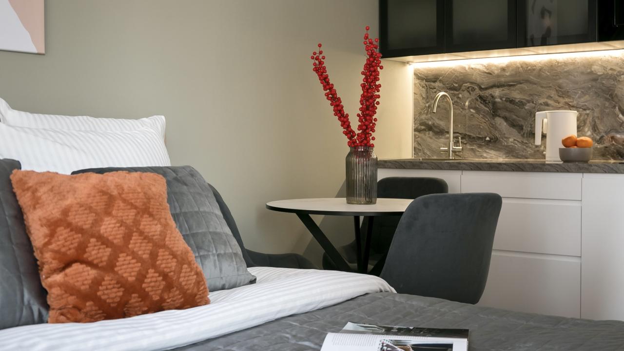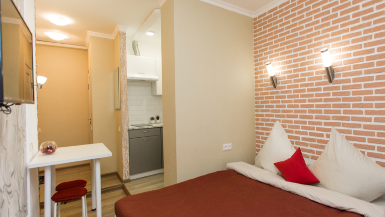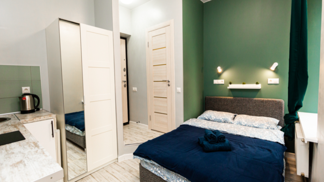 Отличные апартаменты, большая кровать, кондиционер. Удобная планировка. Привлекательный дизайн. Отличные условия для крепкого сна и проживания в целом. Рядом магазины и кафе. Персонал внимателен к гостям, обслуживание отличное, отель чистый.