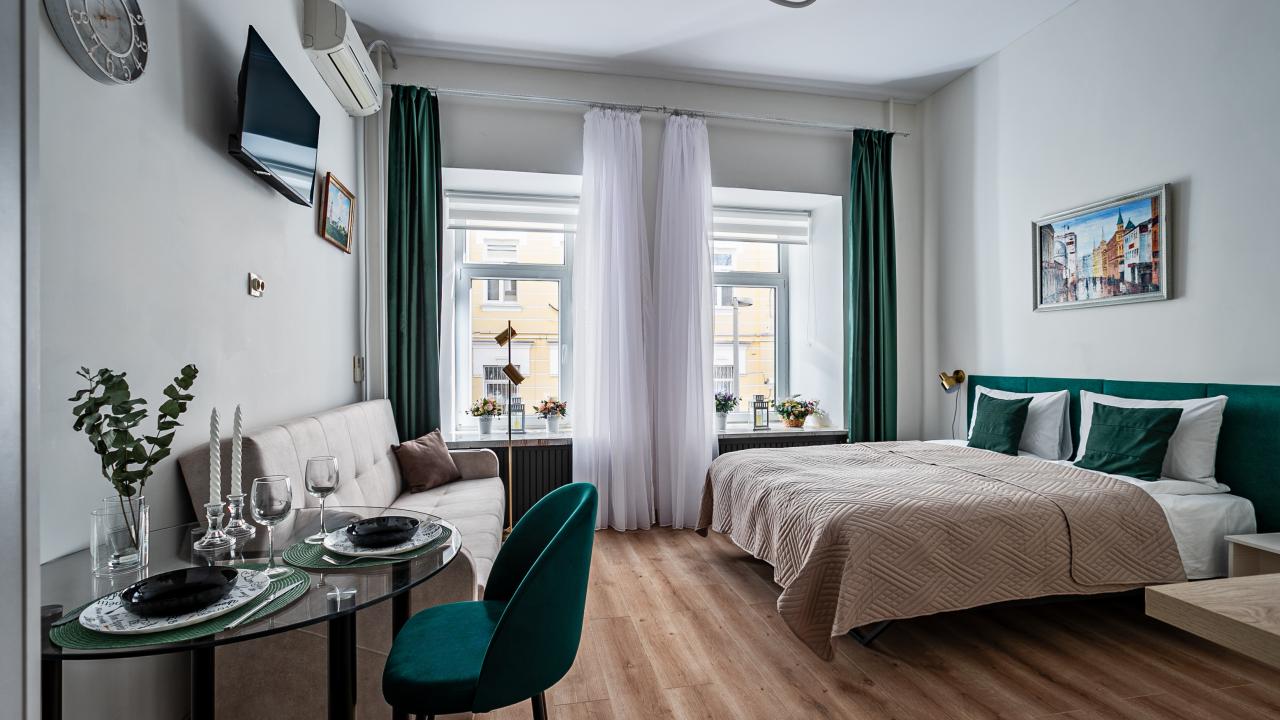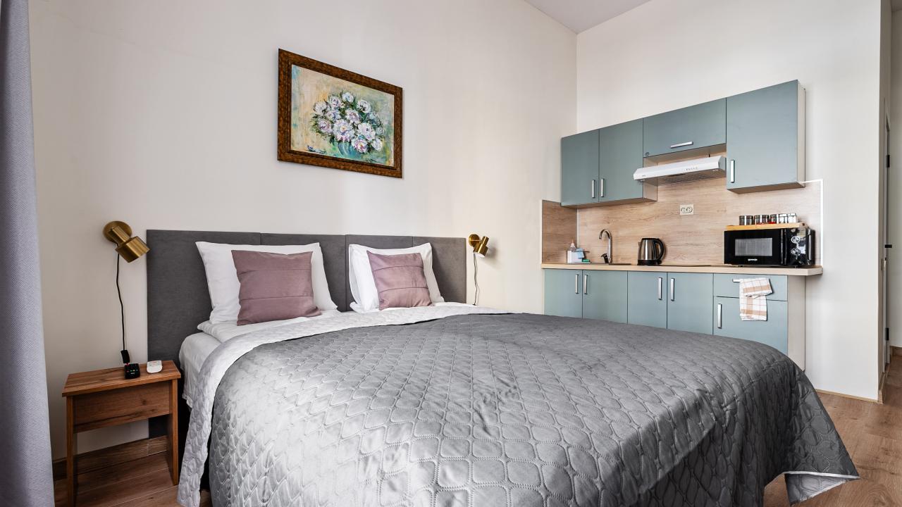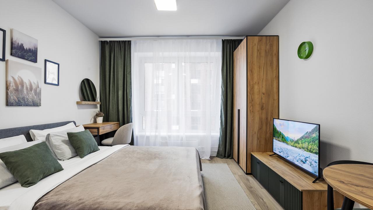 Отличные апартаменты, большая кровать, кондиционер. Удобная планировка. Привлекательный дизайн. Отличные условия для крепкого сна и проживания в целом. Рядом магазины и кафе. Персонал внимателен к гостям, обслуживание отличное, отель чистый.