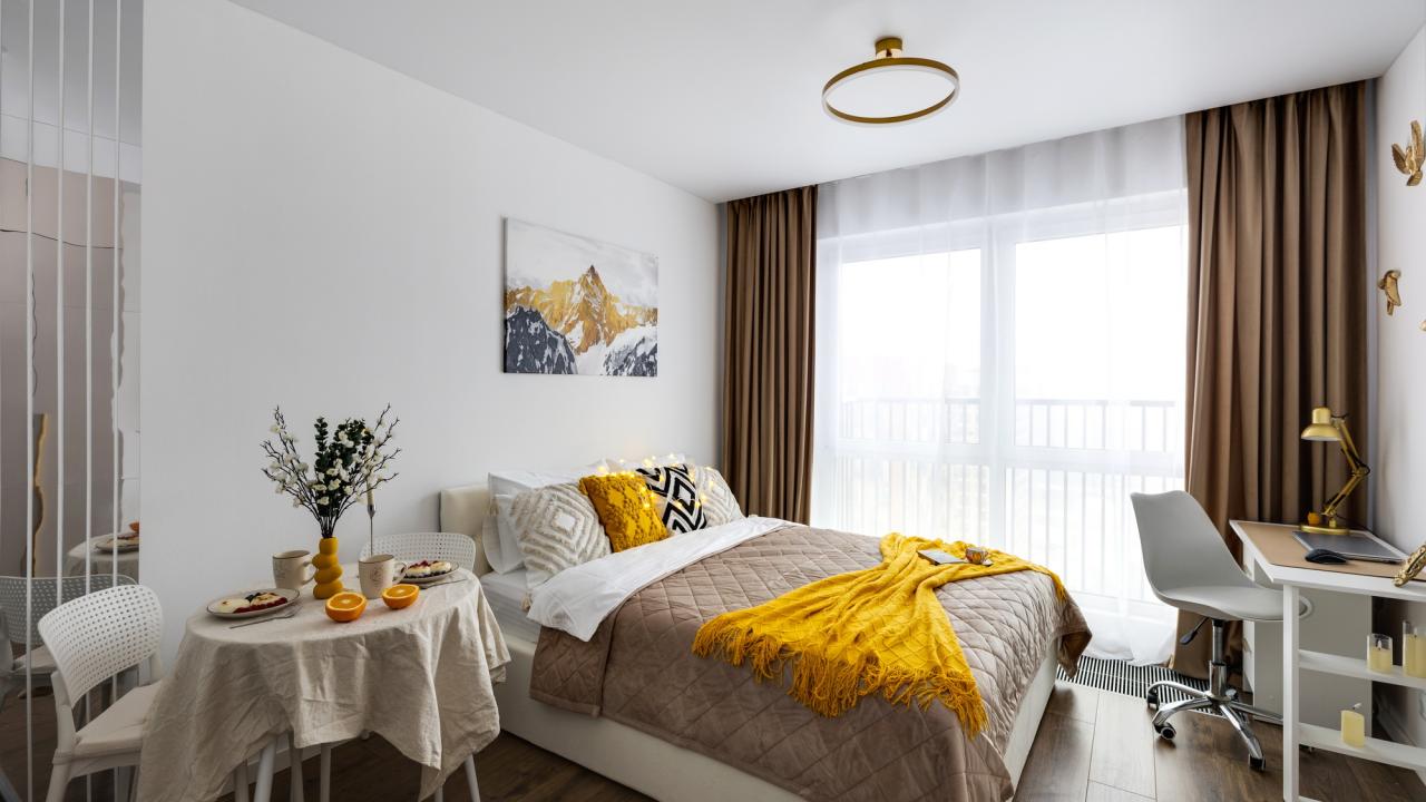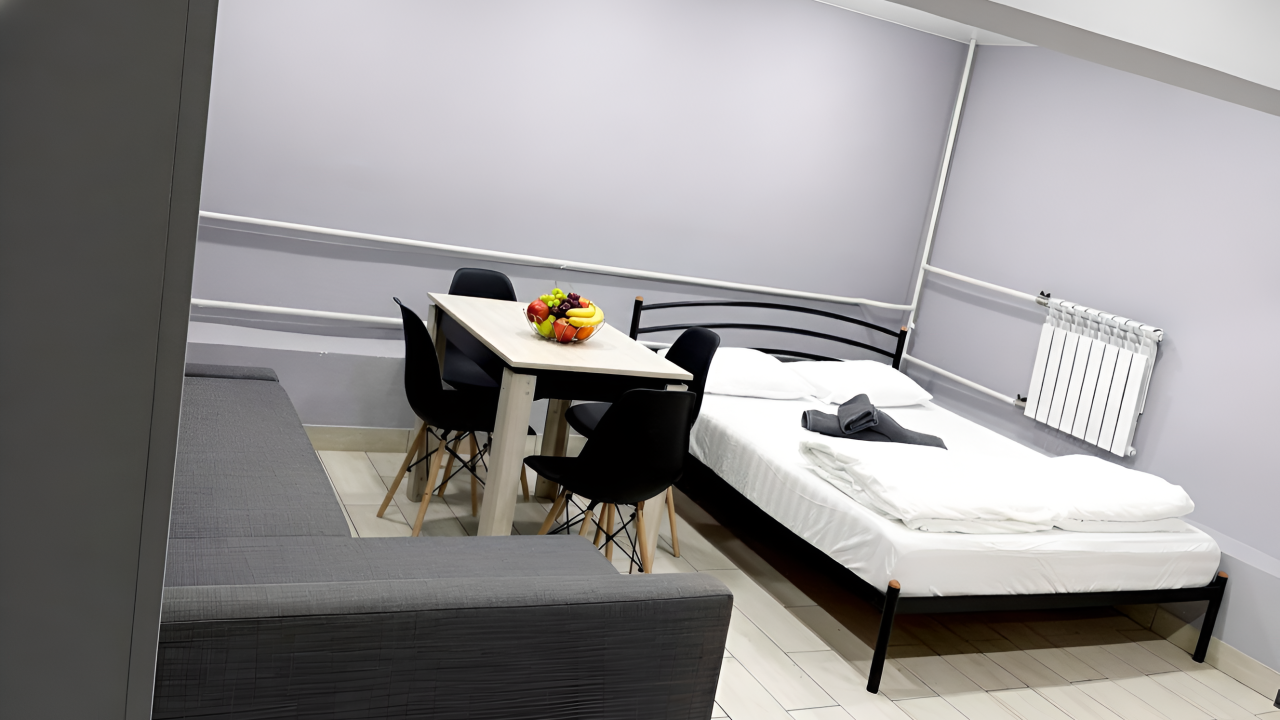 Отличные апартаменты, большая кровать, кондиционер. Удобная планировка. Привлекательный дизайн. Отличные условия для крепкого сна и проживания в целом. Рядом магазины и кафе. Персонал внимателен к гостям, обслуживание отличное, отель чистый.
