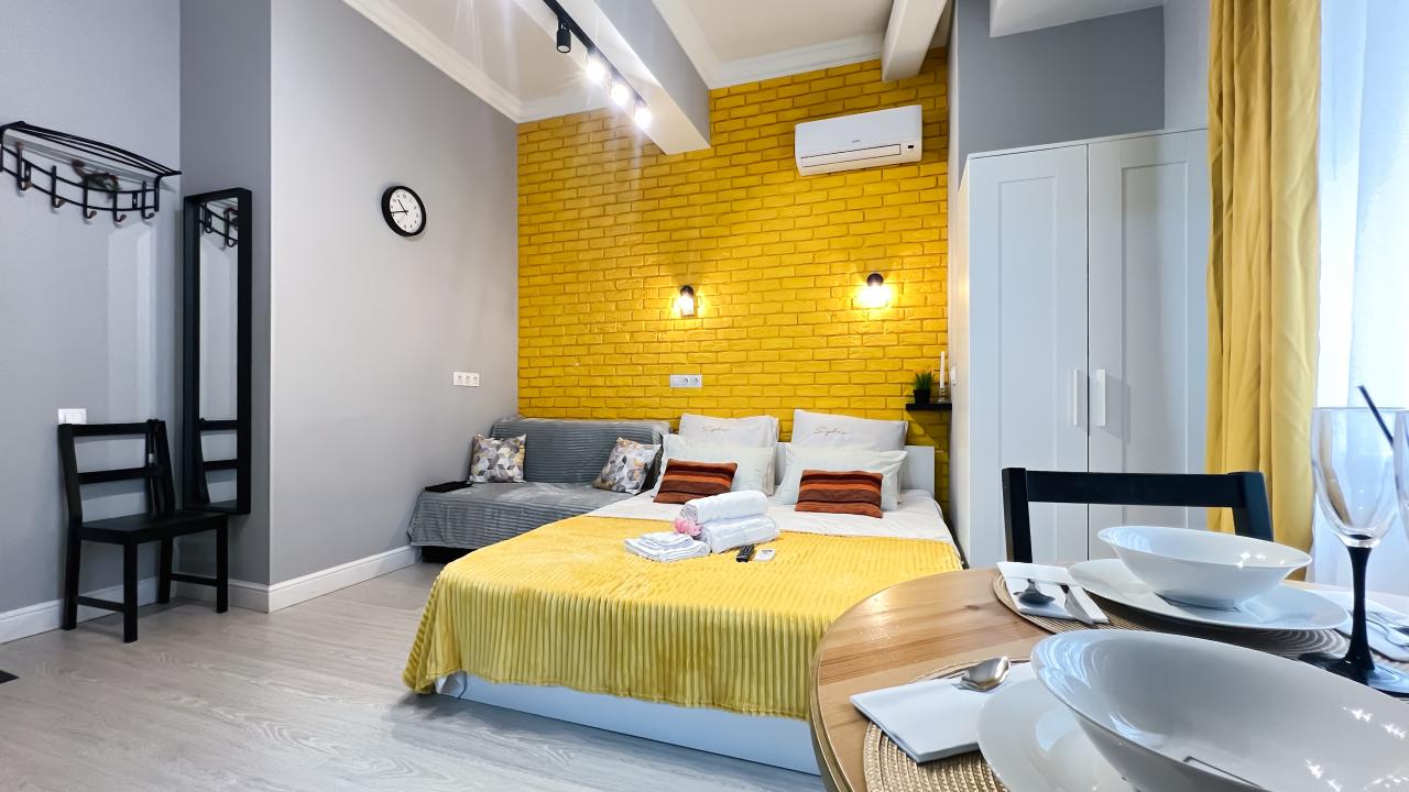 Отличные апартаменты, большая кровать, кондиционер. Удобная планировка. Привлекательный дизайн. Отличные условия для крепкого сна и проживания в целом. Рядом магазины и кафе. Персонал внимателен к гостям, обслуживание отличное, отель чистый.
