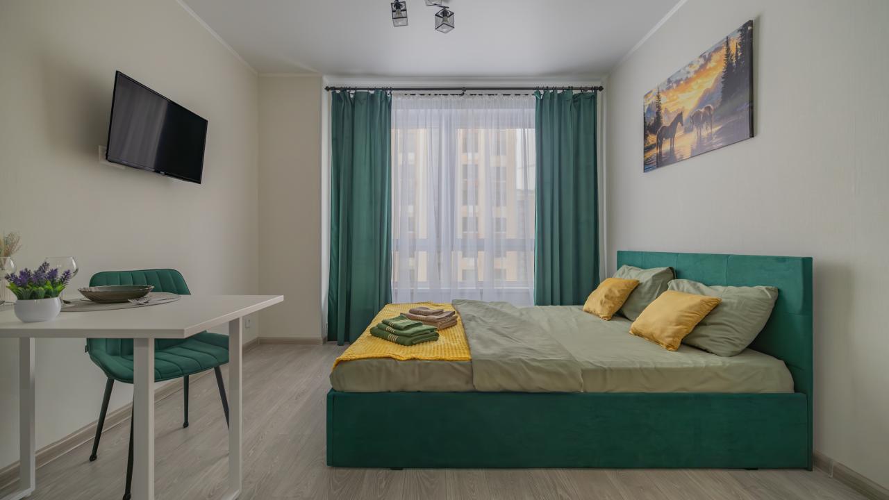 Отличные апартаменты, большая кровать, кондиционер. Удобная планировка. Привлекательный дизайн. Отличные условия для крепкого сна и проживания в целом. Рядом магазины и кафе. Персонал внимателен к гостям, обслуживание отличное, отель чистый.