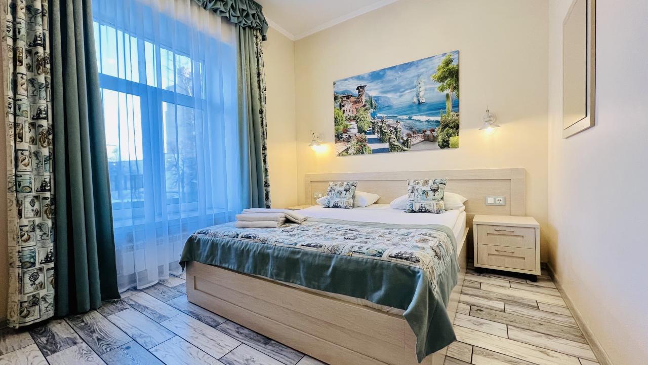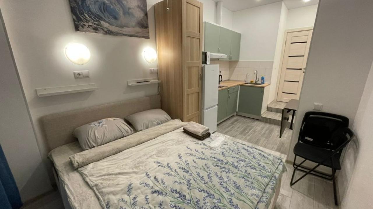 Отличные апартаменты, большая кровать, кондиционер. Удобная планировка. Привлекательный дизайн. Отличные условия для крепкого сна и проживания в целом. Рядом магазины и кафе. Персонал внимателен к гостям, обслуживание отличное, отель чистый.