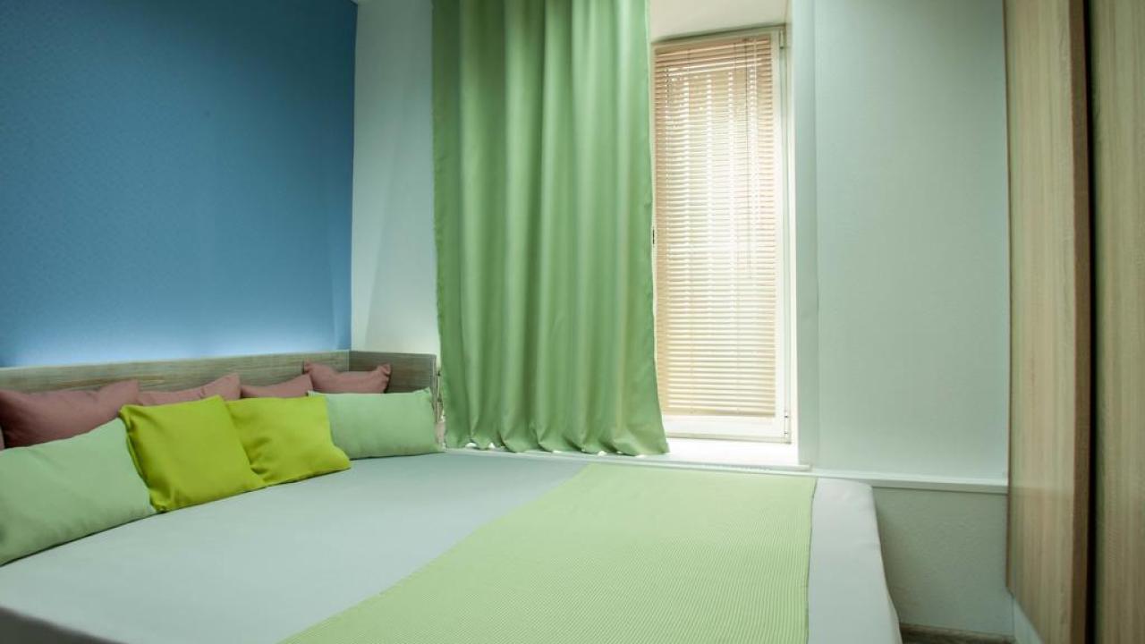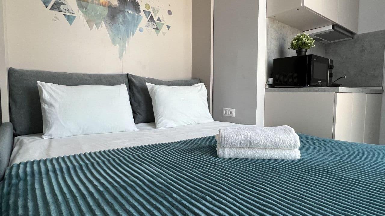 Отличные апартаменты, большая кровать, кондиционер. Удобная планировка. Привлекательный дизайн. Отличные условия для крепкого сна и проживания в целом. Рядом магазины и кафе. Персонал внимателен к гостям, обслуживание отличное, отель чистый.