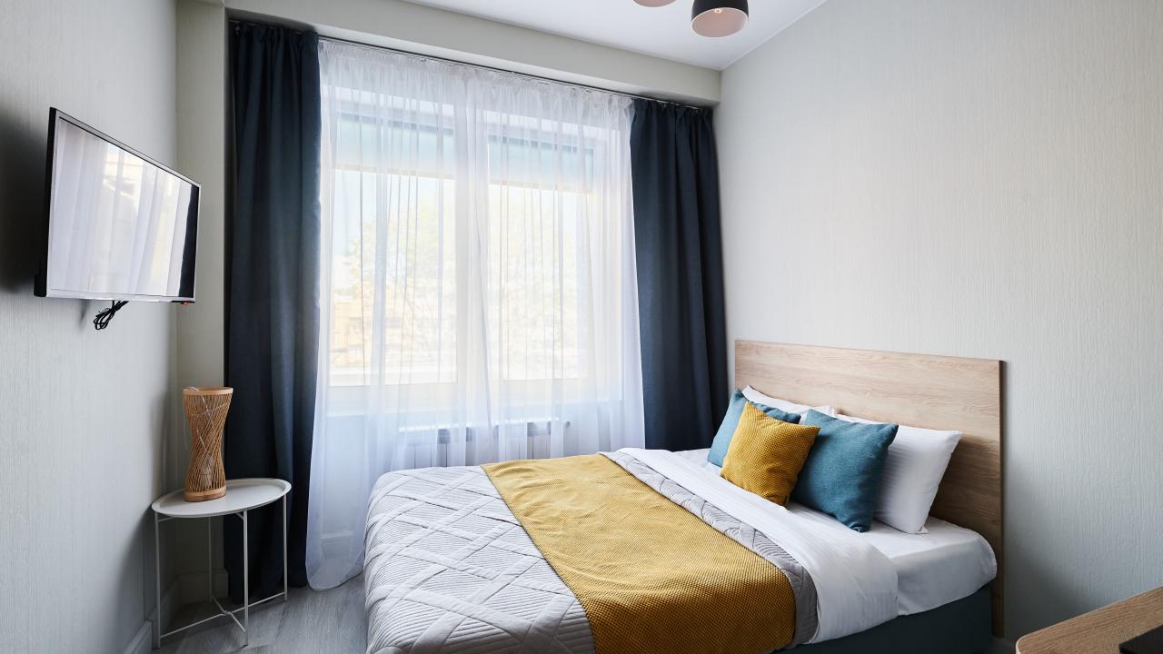 Отличные апартаменты, большая кровать, кондиционер. Удобная планировка. Привлекательный дизайн. Отличные условия для крепкого сна и проживания в целом. Рядом магазины и кафе. Персонал внимателен к гостям, обслуживание отличное, отель чистый.