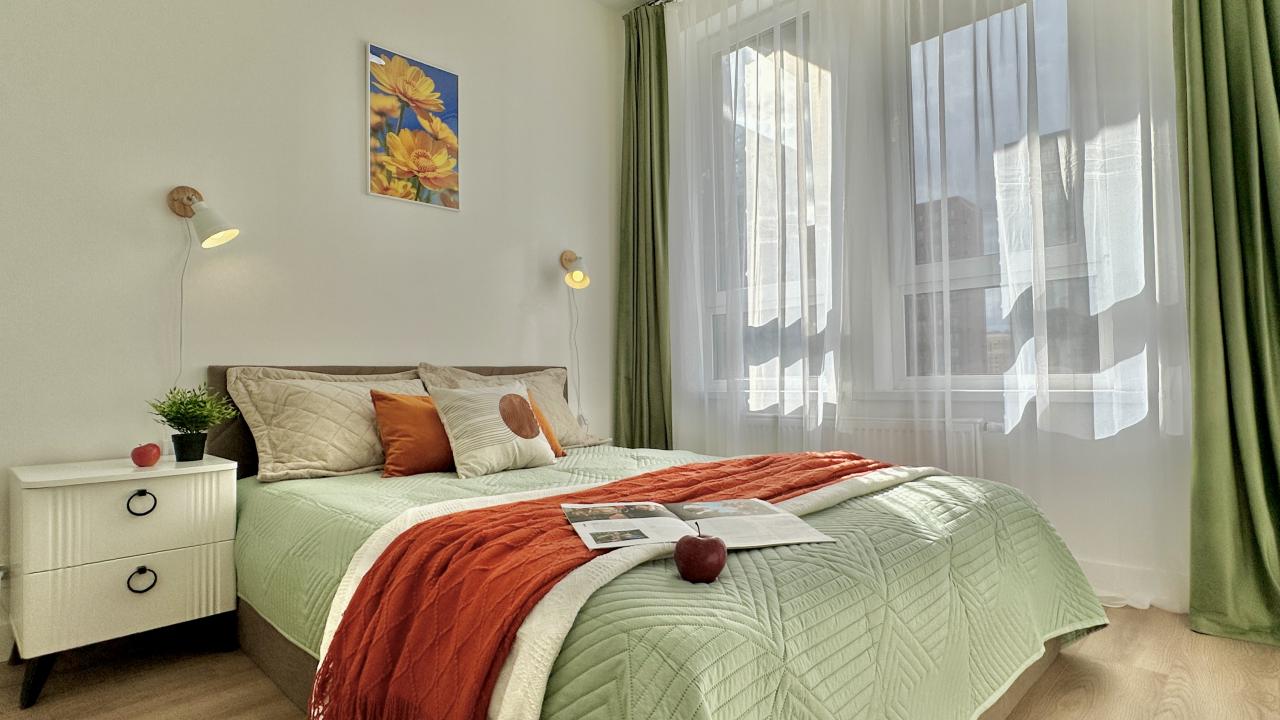 Отличные апартаменты, большая кровать, кондиционер. Удобная планировка. Привлекательный дизайн. Отличные условия для крепкого сна и проживания в целом. Рядом магазины и кафе. Персонал внимателен к гостям, обслуживание отличное, отель чистый.