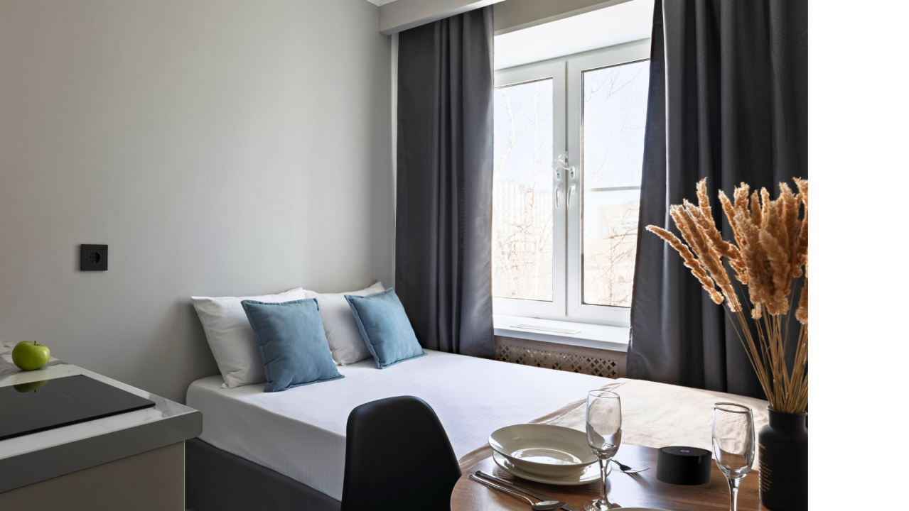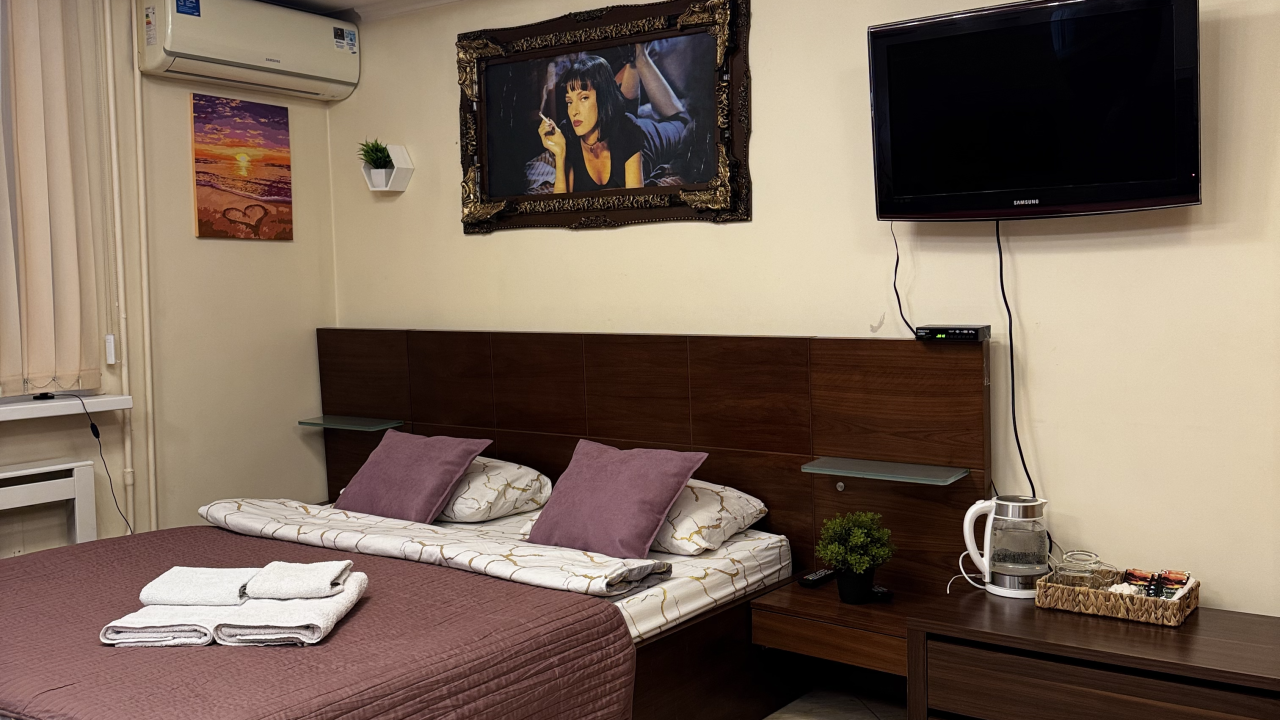 Отличные апартаменты, большая кровать, кондиционер. Удобная планировка. Привлекательный дизайн. Отличные условия для крепкого сна и проживания в целом. Рядом магазины и кафе. Персонал внимателен к гостям, обслуживание отличное, отель чистый.