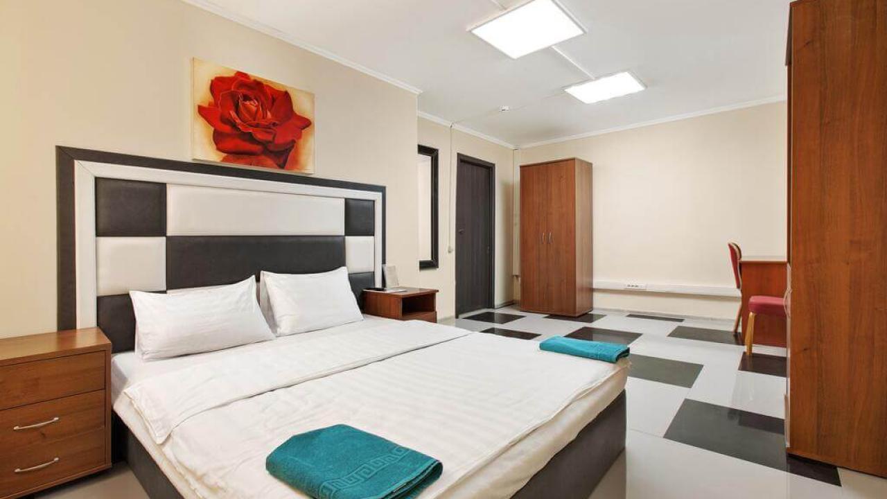 Отличные апартаменты, большая кровать, кондиционер. Удобная планировка. Привлекательный дизайн. Отличные условия для крепкого сна и проживания в целом. Рядом магазины и кафе. Персонал внимателен к гостям, обслуживание отличное, отель чистый.