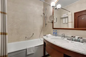 Сотрудники ресепшн доброжелательные, по первому требованию принесли дополнительные банные принадлежности. Уборщики отлично работают — все чисто, постель всегда аккуратно заправлена. В гостинице бесплатно предлагается посещение бассейна, сауны и тренажёрного зала. Лучше приходить с утра, когда никого нет. Отдых в отеле произвёл приятное впечатление. Ели кому-то подходит локация — очень даже советую для отдыха в столице.