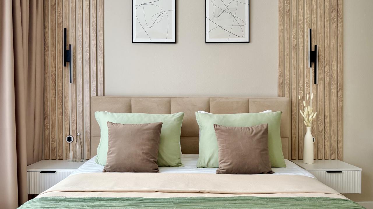 Отличные апартаменты, большая кровать, кондиционер. Удобная планировка. Привлекательный дизайн. Отличные условия для крепкого сна и проживания в целом. Рядом магазины и кафе. Персонал внимателен к гостям, обслуживание отличное, отель чистый.