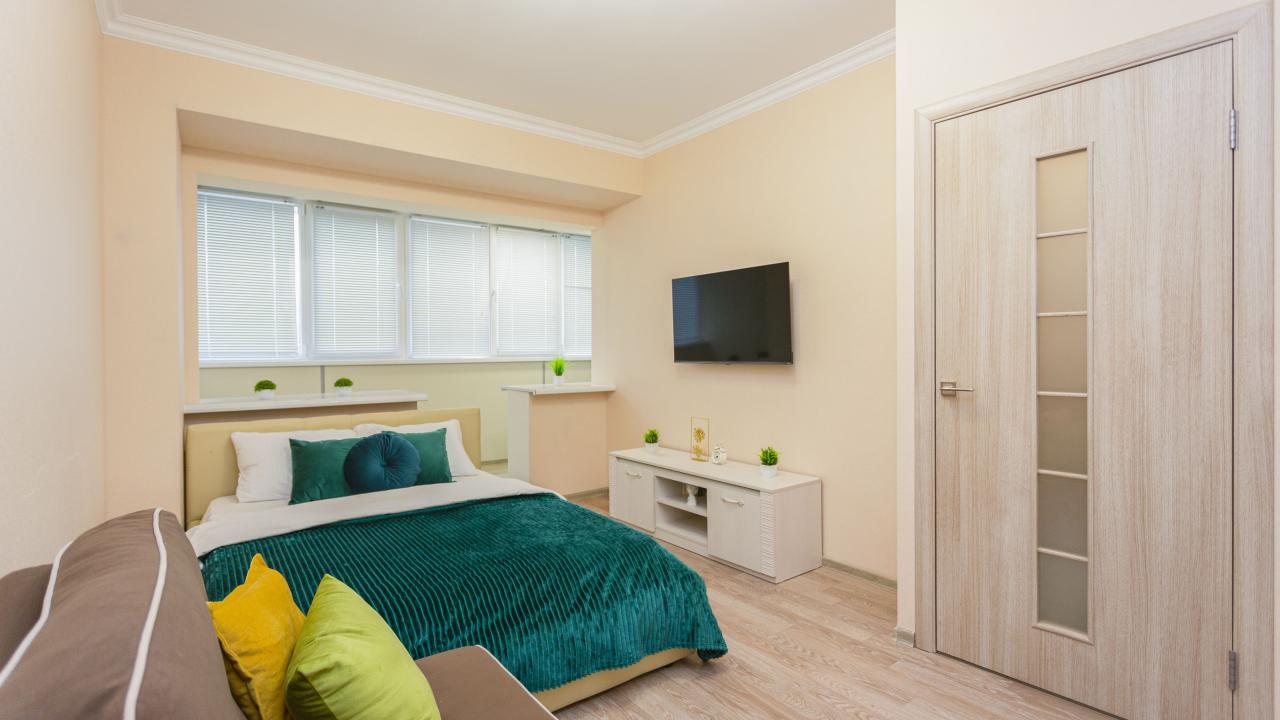 Отличные апартаменты, большая кровать, кондиционер. Удобная планировка. Привлекательный дизайн. Отличные условия для крепкого сна и проживания в целом. Рядом магазины и кафе. Персонал внимателен к гостям, обслуживание отличное, отель чистый.