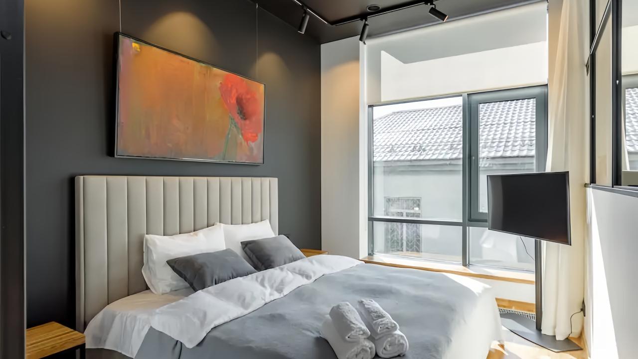 Отличные апартаменты, большая кровать, кондиционер. Удобная планировка. Привлекательный дизайн. Отличные условия для крепкого сна и проживания в целом. Рядом магазины и кафе. Персонал внимателен к гостям, обслуживание отличное, отель чистый.