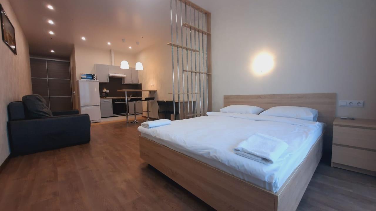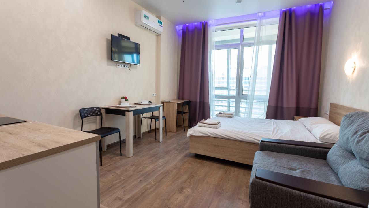 Отличные апартаменты, большая кровать, кондиционер. Удобная планировка. Привлекательный дизайн. Отличные условия для крепкого сна и проживания в целом. Рядом магазины и кафе. Персонал внимателен к гостям, обслуживание отличное, отель чистый.