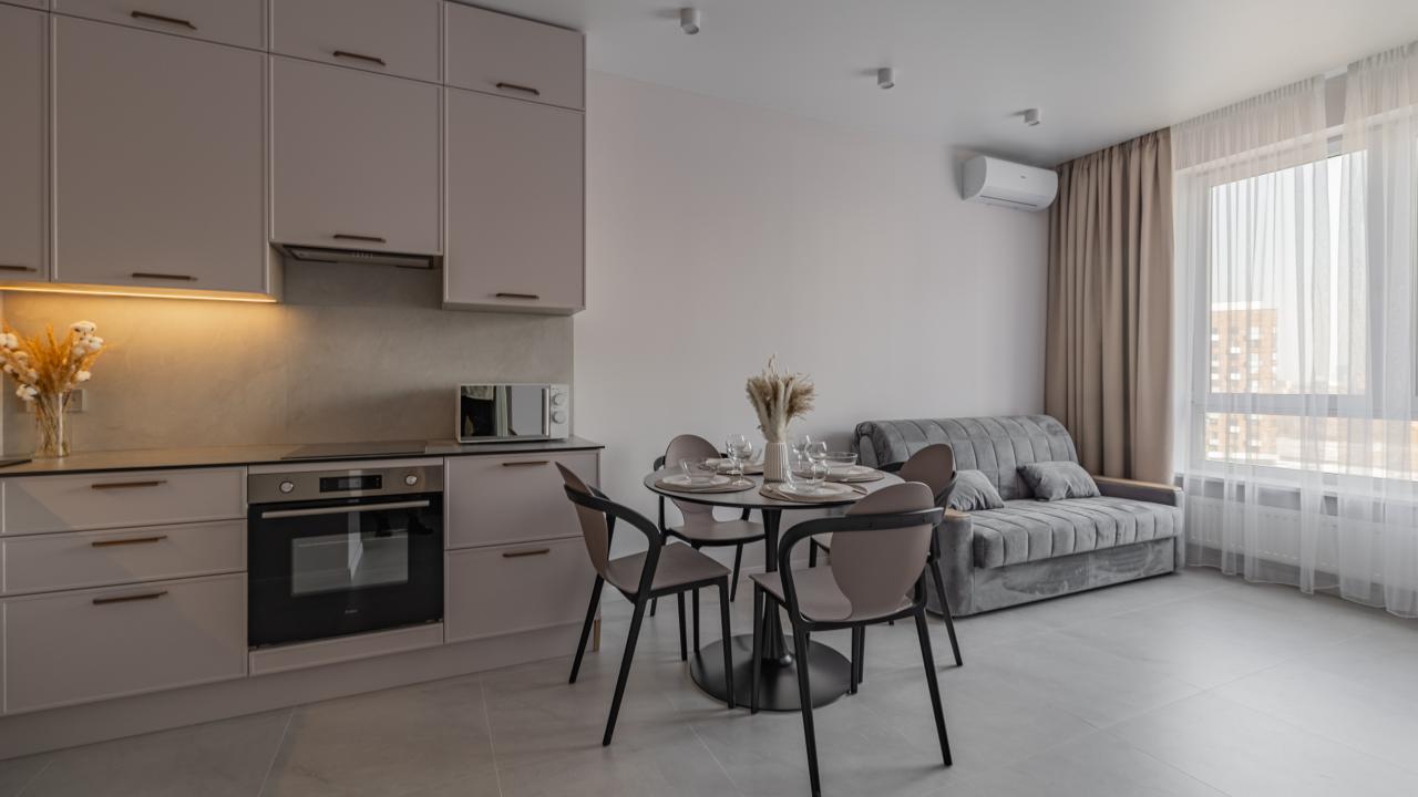 Отличные апартаменты, большая кровать, кондиционер. Удобная планировка. Привлекательный дизайн. Отличные условия для крепкого сна и проживания в целом. Рядом магазины и кафе. Персонал внимателен к гостям, обслуживание отличное, отель чистый.