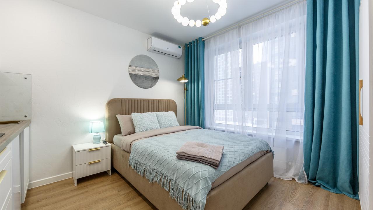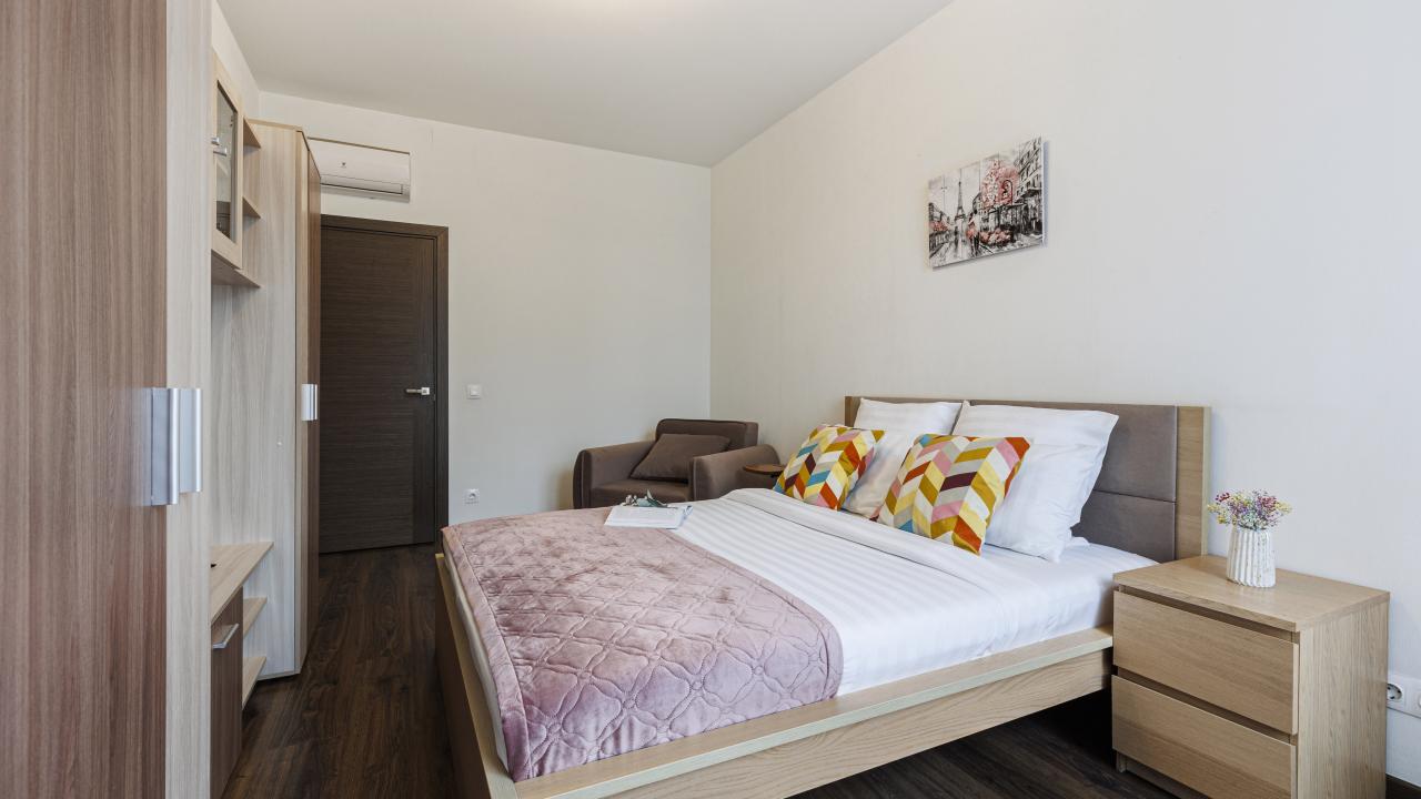 Отличные апартаменты, большая кровать, кондиционер. Удобная планировка. Привлекательный дизайн. Отличные условия для крепкого сна и проживания в целом. Рядом магазины и кафе. Персонал внимателен к гостям, обслуживание отличное, отель чистый.