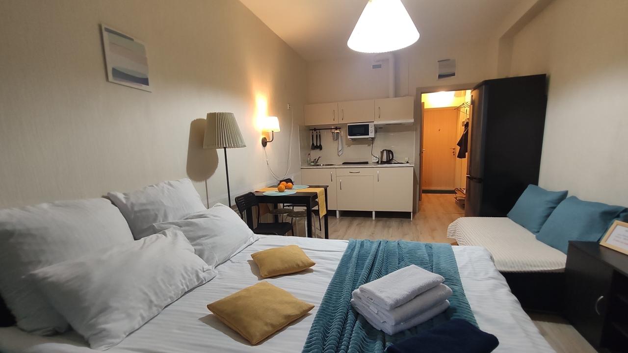 Могу твердо рекомендовать эти апартаменты для проживания. Совершенно никаких недостатков или неудобств. Шикарная квартира, новый евроремонт, качественная мебель и порядок в любом месте. На кухне хорошая техника. До основных достопримечательностей можно дойти пешком, по пути много магазинов и кафе.