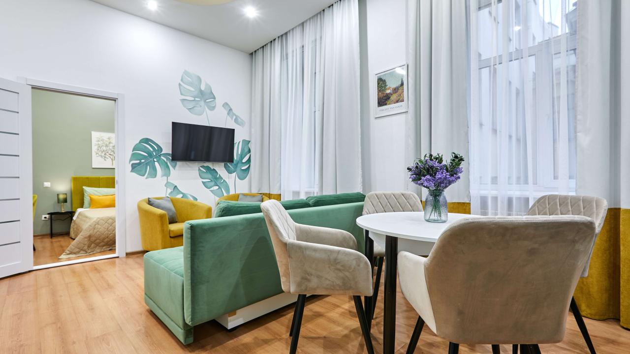 Могу твердо рекомендовать эти апартаменты для проживания. Совершенно никаких недостатков или неудобств. Шикарная квартира, новый евроремонт, качественная мебель и порядок в любом месте. На кухне хорошая техника. До основных достопримечательностей можно дойти пешком, по пути много магазинов и кафе.