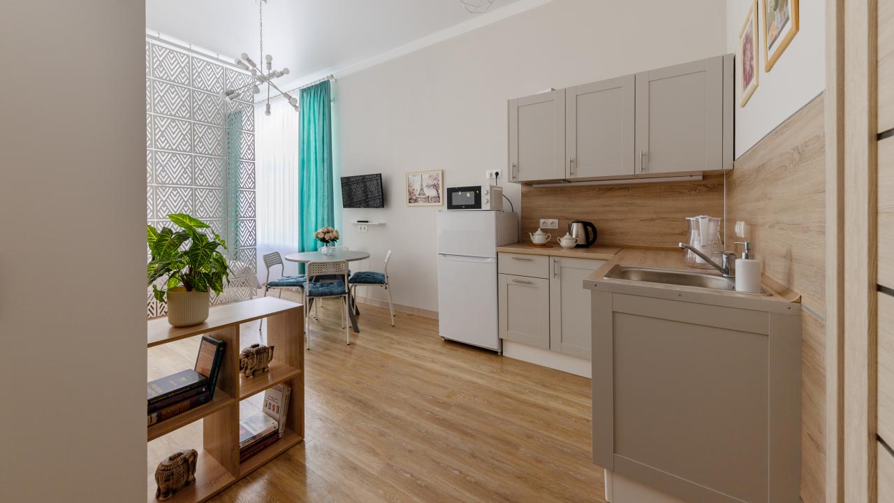 Могу твердо рекомендовать эти апартаменты для проживания. Совершенно никаких недостатков или неудобств. Шикарная квартира, новый евроремонт, качественная мебель и порядок в любом месте. На кухне хорошая техника. До основных достопримечательностей можно дойти пешком, по пути много магазинов и кафе.
